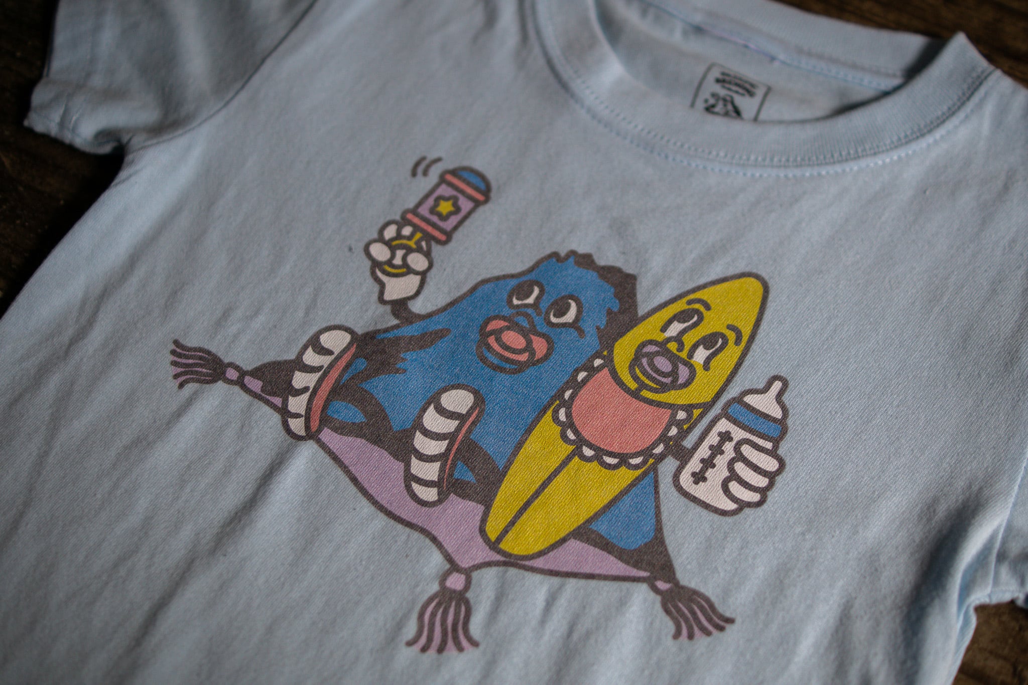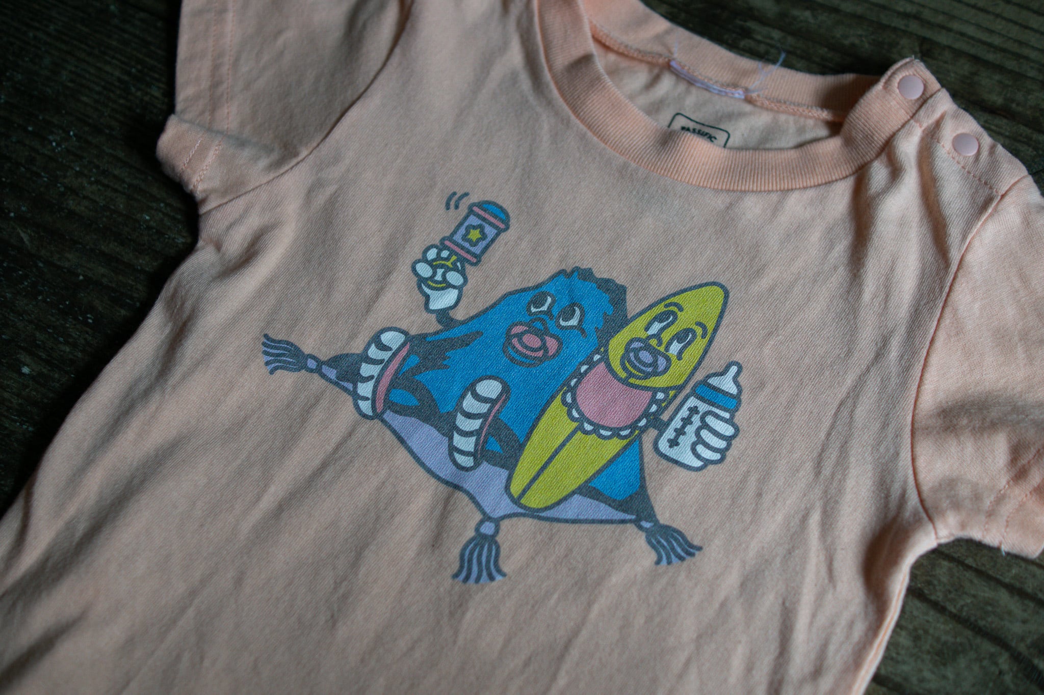 ベビー仕様のパシフィックくんがプリントされたシンプルなTシャツ。